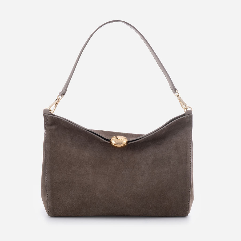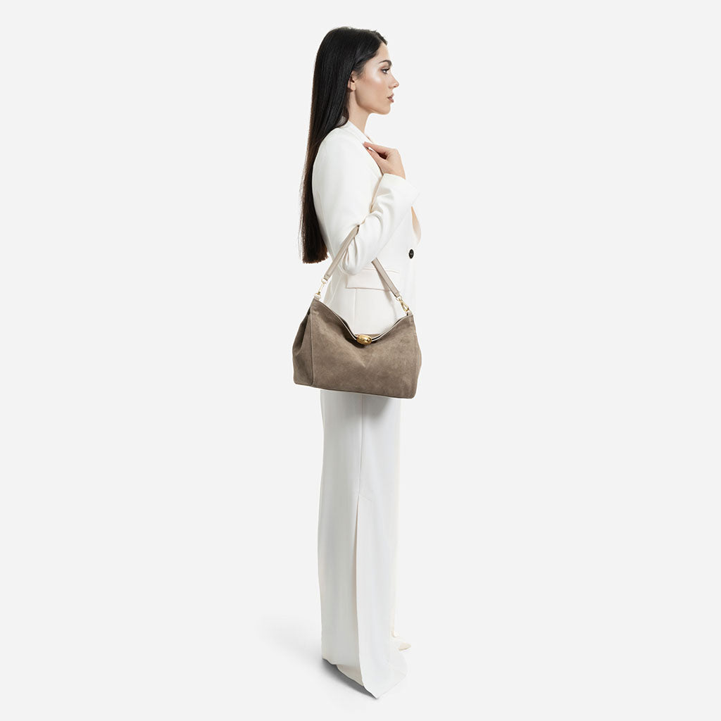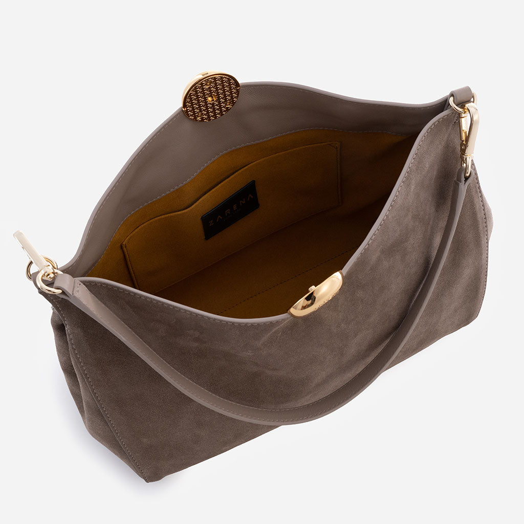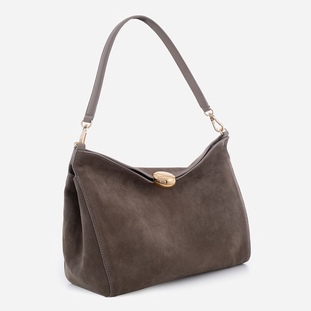 Η σουέτ τσάντα ώμου Monica συνδυάζει την άνεση με το στυλ σε ένα εκλεπτυσμένο σχέδιο. Το αφαιρούμενο λουράκι της σου επιτρέπει να τη φοράς με πολλούς διαφορετικούς τρόπους, ενώ το κομψό κούμπωμα της προσθέτει πληρότητα και εκλεπτυσμένη γοητεία. Είναι το τέλειο αξεσουάρ για τις γυναίκες που θέλουν να συνδυάσουν την άνεση με τη γνήσια κομψότητα στην καθημερινότητά τους.