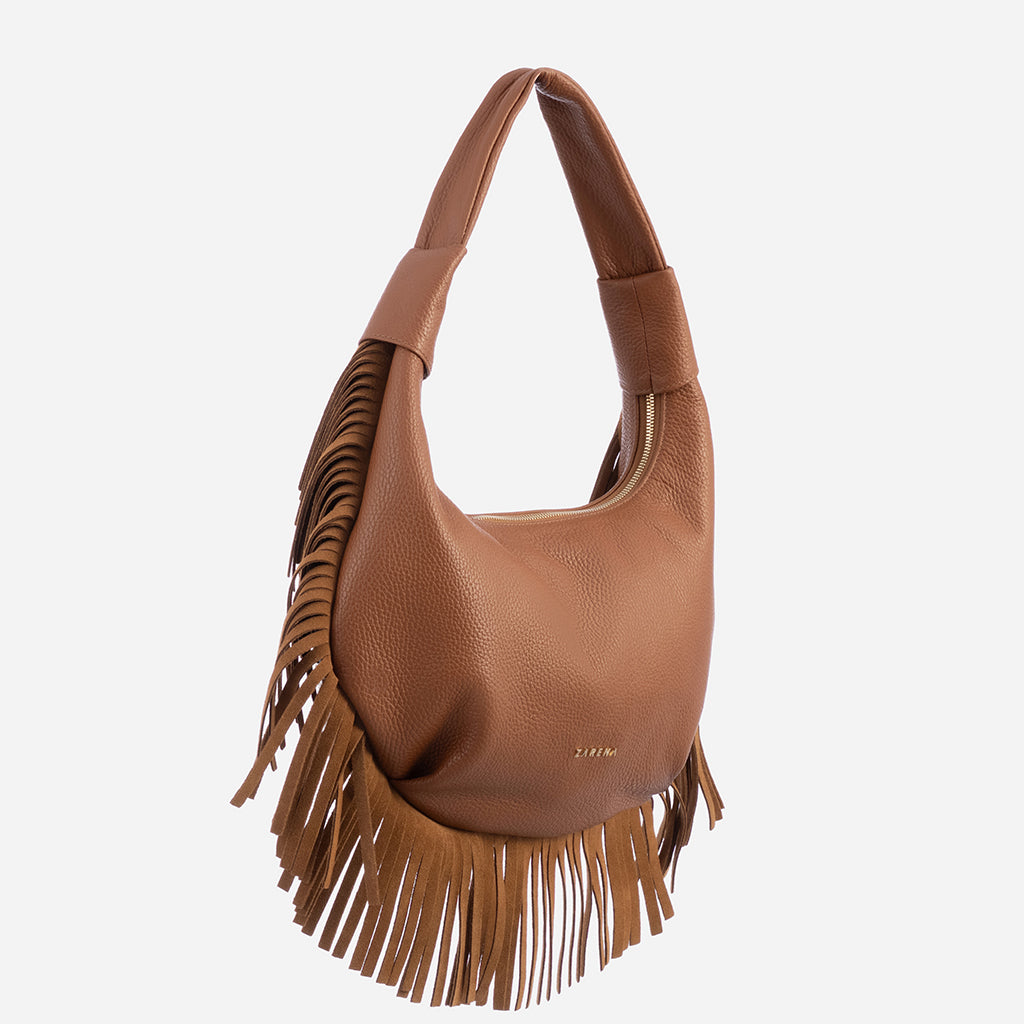 Η τσάντα Simona εντυπωσιάζει με την καθαρή σιλουέτα της και τα εκφραστικά κρόσσια από απαλό σουέτ, που προσθέτουν κίνηση και χαρακτήρα. Αυτή η λεπτομέρεια προσθέτει μια μοντέρνα πινελιά σε κάθε εμφάνιση, καθιστώντας το μοντέλο αξέχαστο και τονίζοντας την ατομικότητά σου.